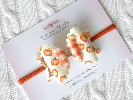 Pumpkin patch piggies | OOAK Large hair clip set 3yrs+