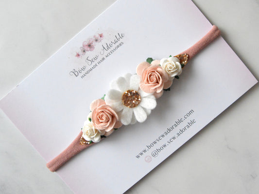 Floral headbands are always a firm favourite. I use a variety of materials like high quality mulberry paper flowers, artificial silk flowers, satin ribbon and 100% wool felt.