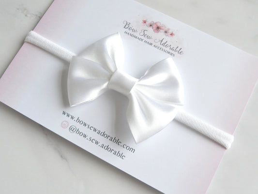 Sold outWhite satin bias | Hair bow