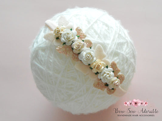 Beige lace bunny | OOAK nylon headband 9M+ RTP